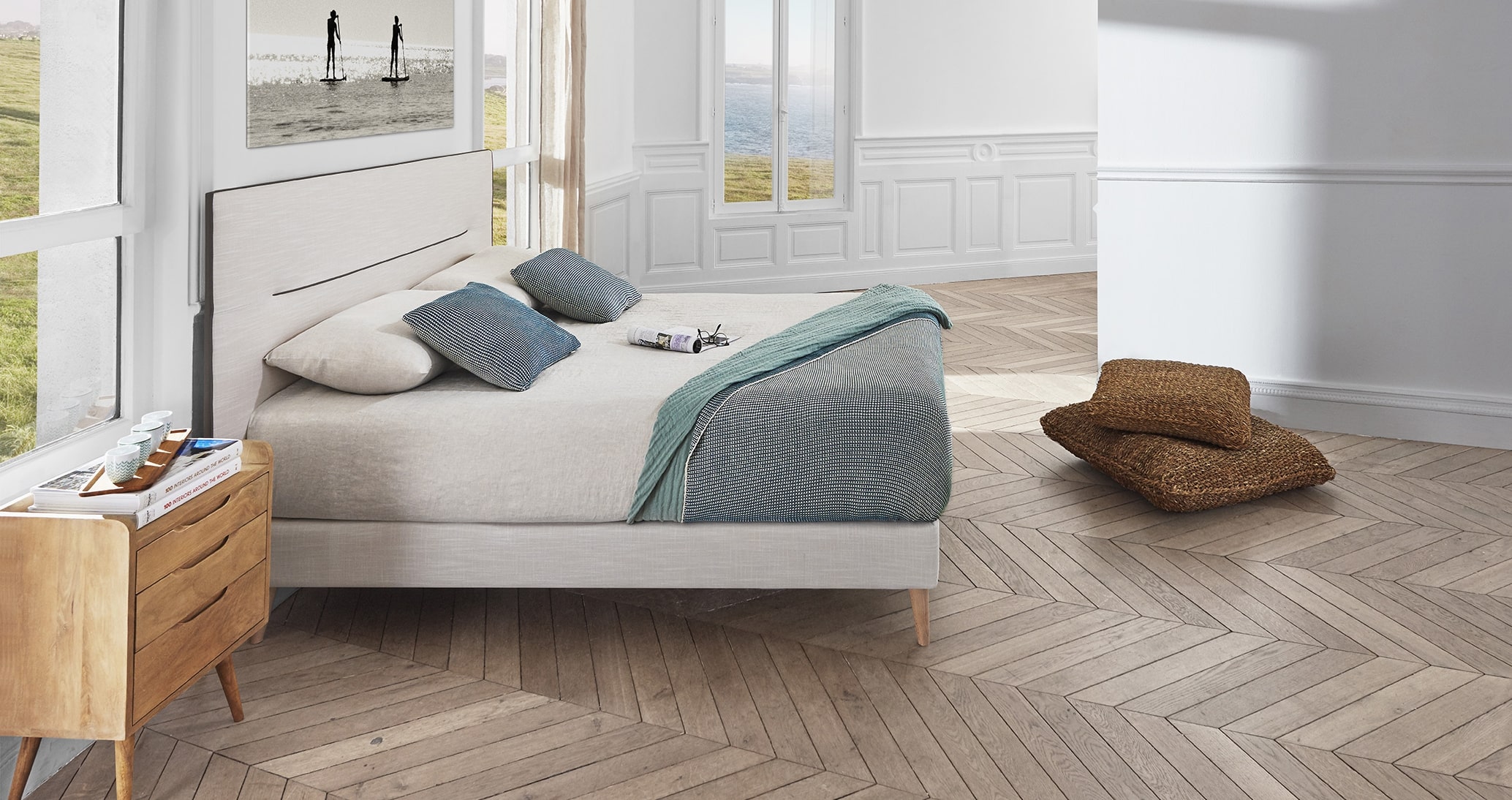 À l’intérieur, les espaces sont bien distincts dans des corners : sommier, matelas, tête de lit, comme pour les accessoires : oreillers cervical Tempur, oreiller laine BVT, oreiller duvet d’oie Pyrenex, protection de matelas, drap housse. L’aspect Déco et confort ne sont pas oubliés, vous trouverez : dessus de lit, parure de lit, housse de couette, plaid, couverture……